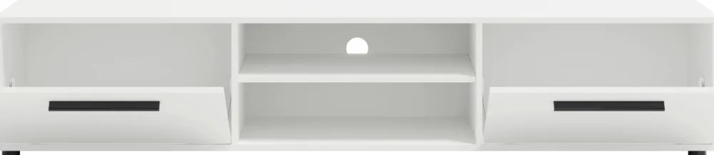 - 2 klapy i otwarta półka z przepustem kablowym – komfortowe przechowywanie i uporządkowana przestrzeń