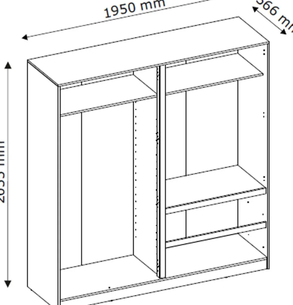 - Pojemna szafa do sypialni – 195 cm szerokości zapewnia mnóstwo miejsca na ubrania i akcesoria