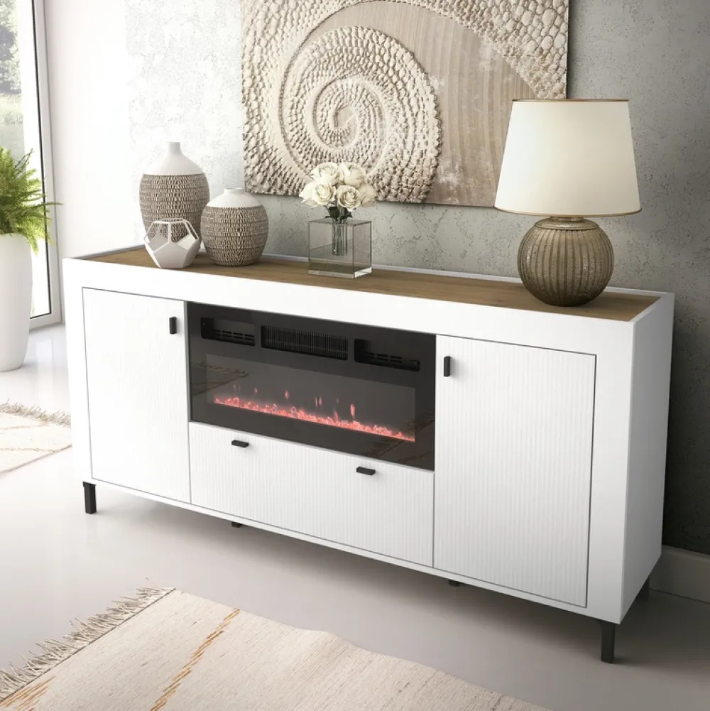 - Front wykonany jest z płyty wiórowej. Posiada prążkowany wzór.