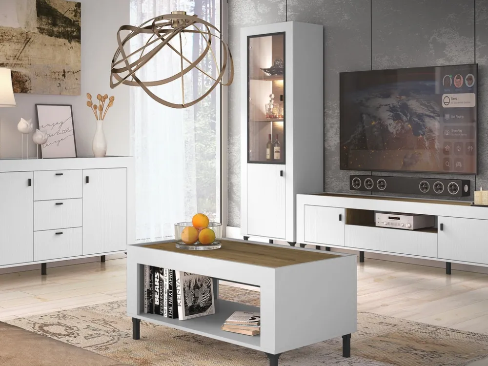 - Krawędzie zabezpieczono okleiną ABS, która dodatkowo uodparnia mebel na uszkodzenia mechaniczne.