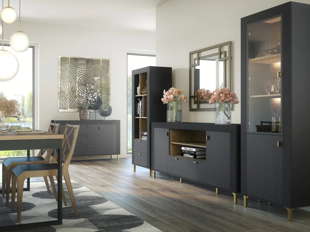 Trzydrzwiowa szafa do salonu MISTY o szerokości 137 cm to funkcjonalne rozwiązanie, które łączy elegancję z praktycznym wykorzystaniem przestrzeni. Dzięki swojemu nowoczesnemu designowi i neutralnym wykończeniom doskonale wkomponuje się w każde wnętrze, stając się nie tylko elementem dekoracyjnym, ale także pojemnym miejscem do przechowywania.