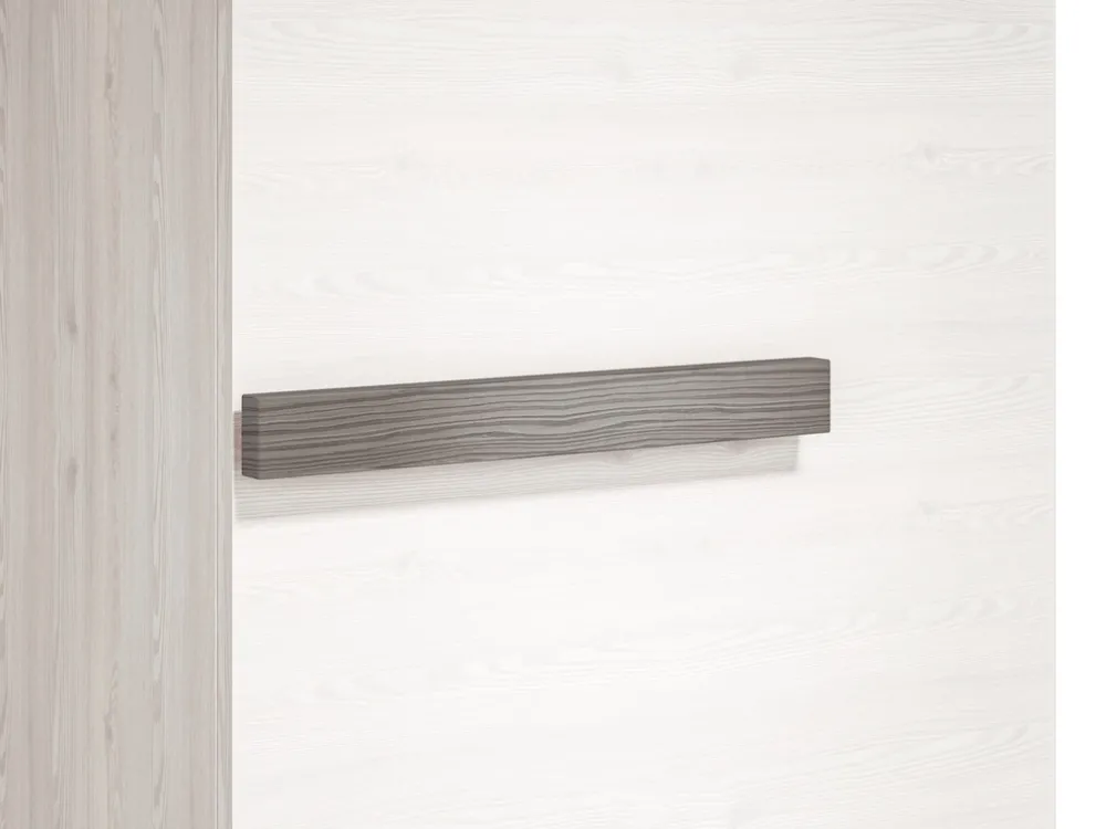 - Uchwyty zostały wykonane z płyty MDF w szarym kolorze. Elegancki kształt doskonale komponuje się z całokształtem mebla.