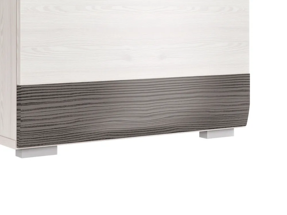 Obrzeża szafy zostały wykończone okleiną ABS, co zapewnia jej wyjątkową trwałość i odporność na codzienne użytkowanie. Dzięki temu szafa zachowa swój estetyczny wygląd na długie lata, niezależnie od intensywności jej użytkowania.