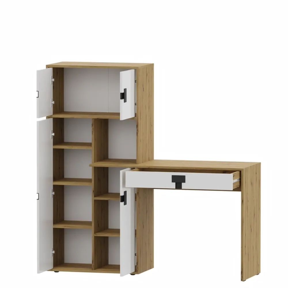 - Regał, szafa oraz biurko z regałem dostępne w kolorze Dąb Artisan.