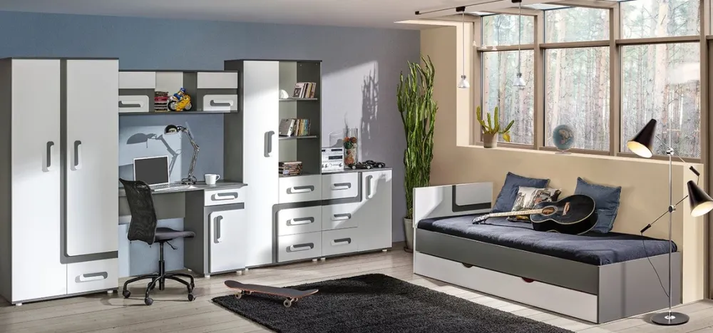 - Nowoczesny regał z młodzieżowej kolekcji mebli systemowych APETITO. Regał z trzema szufladami oraz dwiema otwartymi półkami i czterema zamkniętymi, regał można skonfigurować na wiele kolorów, aby dopasować go do aranżacji wnętrza.