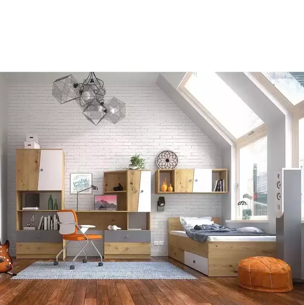 Wyposażenie pokoju młodzieżowego często stanowi nie lada wyzwanie, zestaw nowoczesnych mebli systemowych z kolekcji MONACO wychodzi na wprost oczekiwaniom, i zadowala zarówno rodziców jak i młodzież. W skład zestawu mebli systemowych MONACO wchodzi łóżko z dwiema pojemnymi szufladami na akcesoria sypialniane, półka zamknięta z drzwiami i dwoma wnękami do zagospodarowania książkami oraz rozmaitymi dekorami, biurko z regałem wyposażone w dwie szuflady, półkę otwartą oraz parę drzwi, w której znajdziemy wnękę a nad nią półkę oraz duży regał z dwiema szufladami na akcesoria, półką i wnęką na dekory czy książki, oraz drzwiami, za którymi znajdziemy półkę i wnękę na najpotrzebniejsze rzeczy.