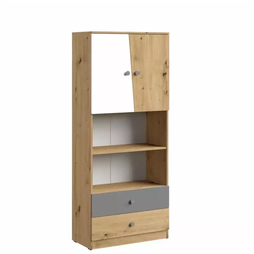 - Nowoczesne meble systemowe w kolorze Dąb Artisan z kolekcji MONACO. Zestaw mebli systemowych do pokoju młodzieżowego MONACO zawiera duży regał z drzwiami, łóżko z dwiema szufladami, półkę zamkniętą z dwiema wnękami na dekory, oraz biurko z regałem.
