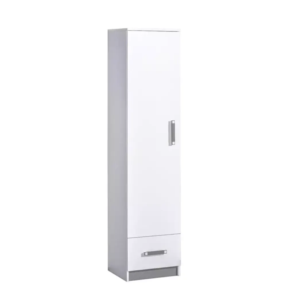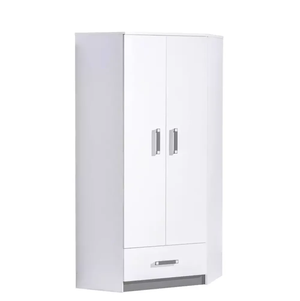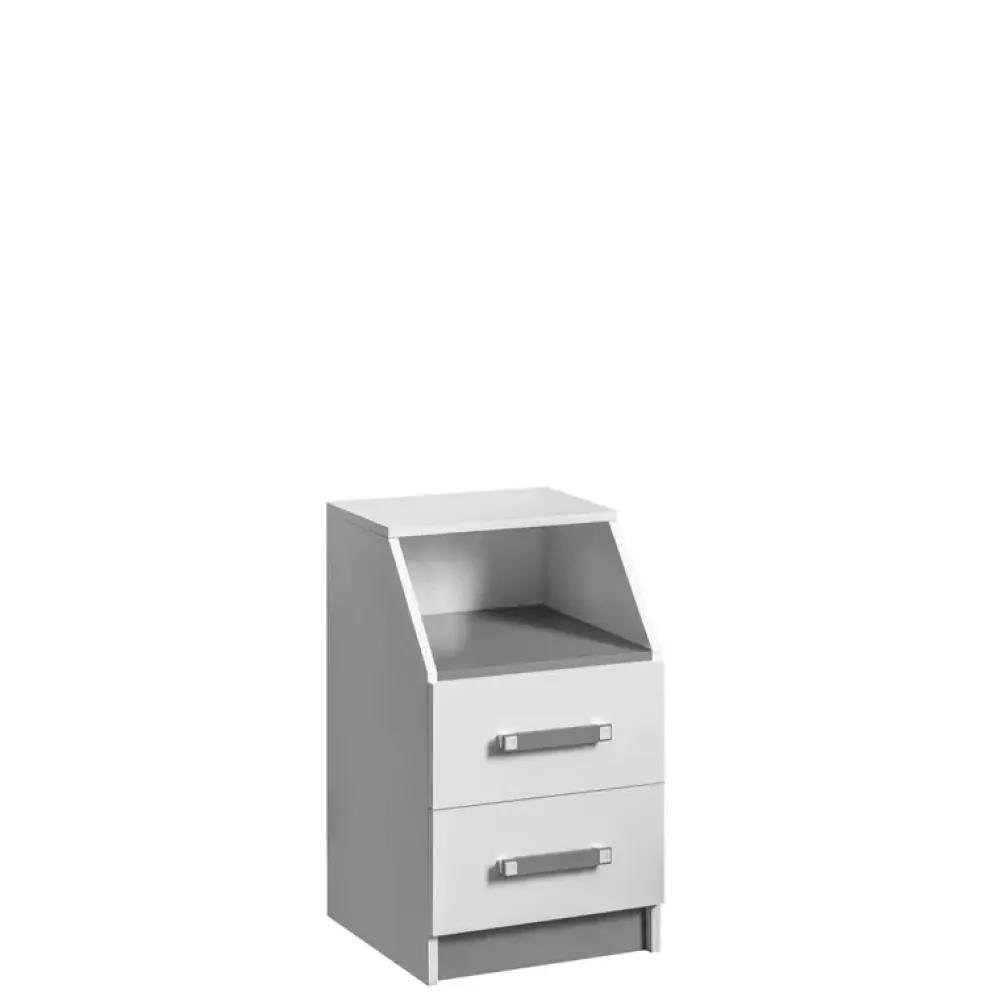 Zestaw mebli do pokoju młodzieżowego kolekcji TRAFIKO. Zestaw zawiera biurko razem ze swoim kontenerkiem, który został wyposażony we dwie szuflady, regał zamknięty został wyposażony w szufladę i drzwi, za którymi znajdują się trzy półki. Szafa narożna posiada szufladę trzy półki oraz drążek na wieszaki. Dodatkowo duży regał posiada dwie otwarte półki, na których możesz zagospodarować swoje akcesoria. Łóżko, które wchodzi w skład zestawu, posiada swój schowek na akcesoria sypialniane. Uzupełnieniem zestawu jest półka wisząca na książki.