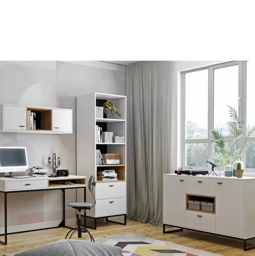 - Kolor: Biały + wstawki w kolorze dąb artisan.