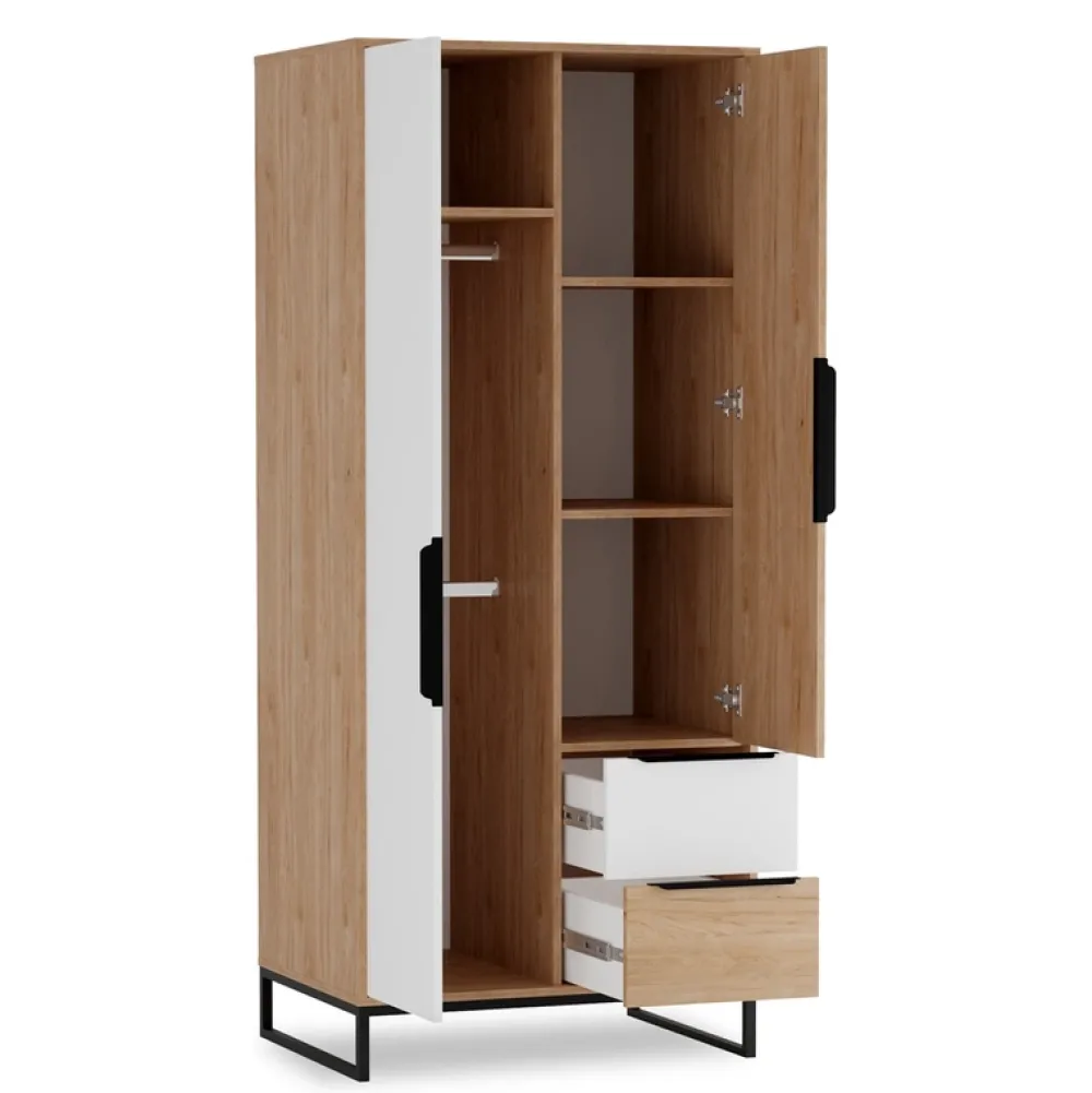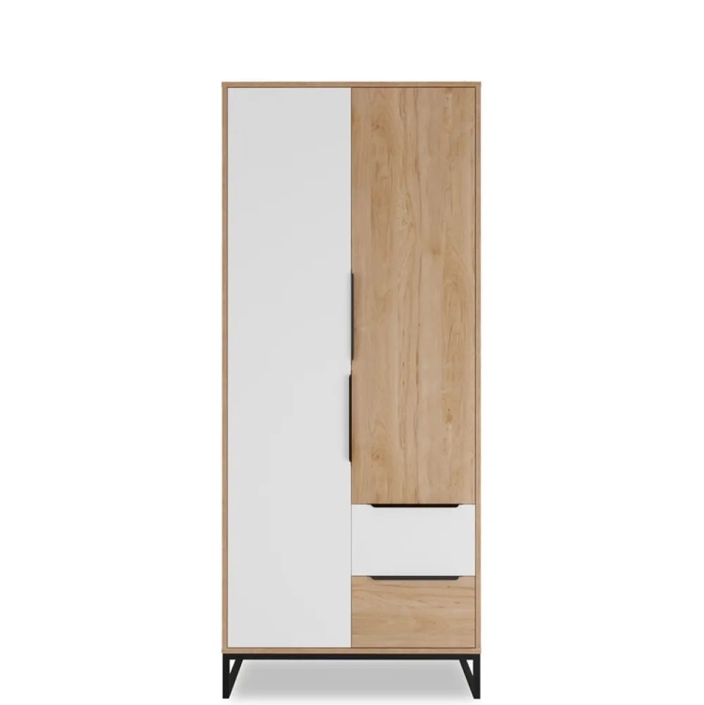 Szafa o szerokości 80 cm wyposażona została w szuflady – idealne do przechowywania bielizny lub różnych akcesoriów. Natomiast obecne w niej dwa drążki pozwolą na uporządkowane większości ubrań.