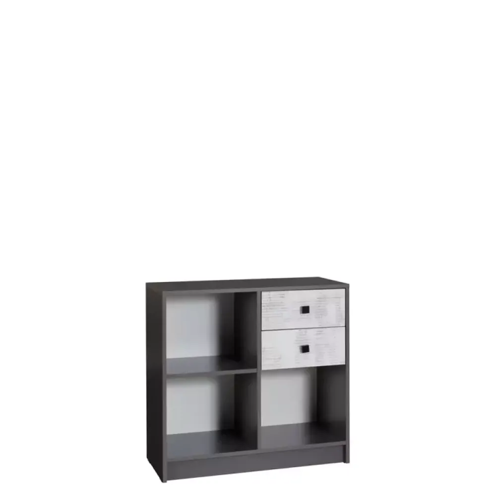 - Funkcjonalna komoda prawostronna z szufladami na rolkowych prowadnicach oraz półkami o szerokości 80cm, system mebli młodzieżowych TOM.