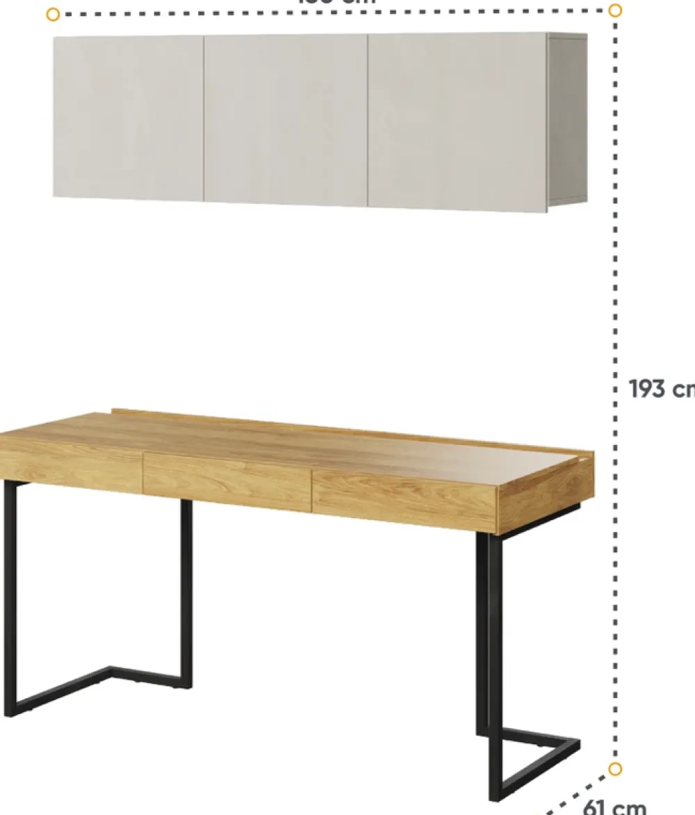 To biurko charakteryzuje się prostą, aczkolwiek elegancką formą. Blat w ciepłym odcieniu drewna, wsparty na solidnych, metalowych nogach w czarnym kolorze, tworzy wyważoną kompozycję, która wprowadza nowoczesny styl do każdego pokoju młodzieżowego. Biurko jest wyposażone w trzy praktyczne szuflady, które idealnie nadają się do przechowywania niezbędnych akcesoriów szkolnych, książek czy innych przedmiotów codziennego użytku.