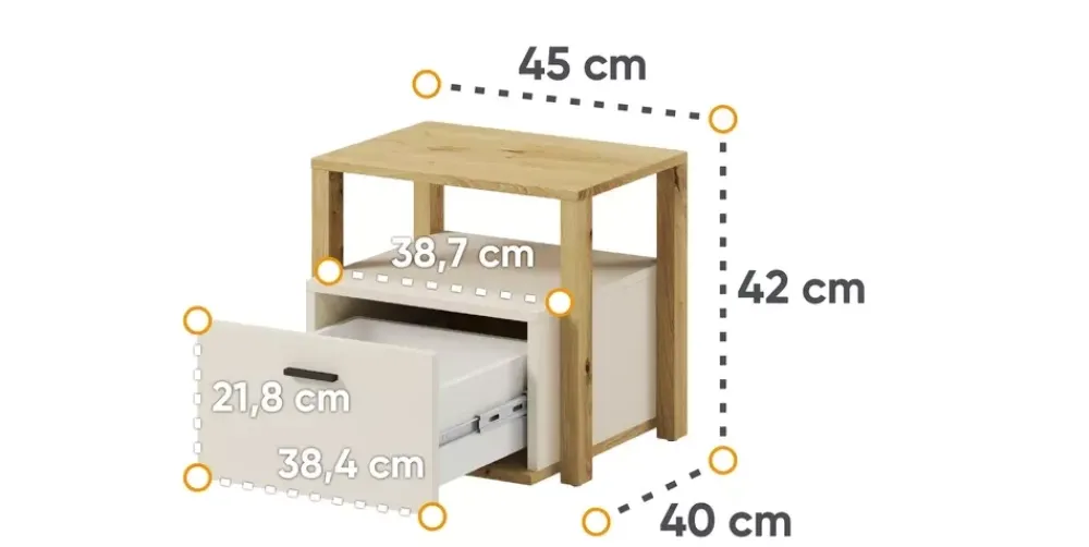 Podsumowując, nasza młodzieżowa szafka nocna łączy funkcjonalność, trwałość i styl w jednym, spełniając potrzeby najbardziej wymagającej młodzieży. Bez względu na to, czy szukasz mebla do przechowywania, czy chcesz dodać trochę nowoczesnej elegancji do sypialni, nasza szafka nocna jest idealnym rozwiązaniem.