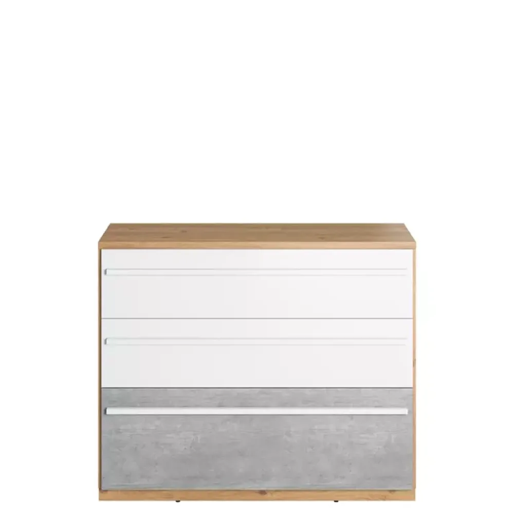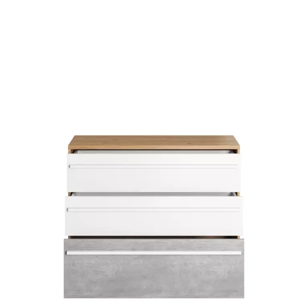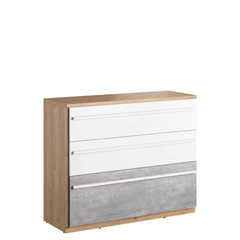 Komoda z trzema szufladami to doskonałe miejsce do przechowywania ubrań i innych potrzebnych rzeczy. Dzięki swojej konstrukcji pozwala na łatwe i wygodne przechowywanie i porządkowanie rzeczy.