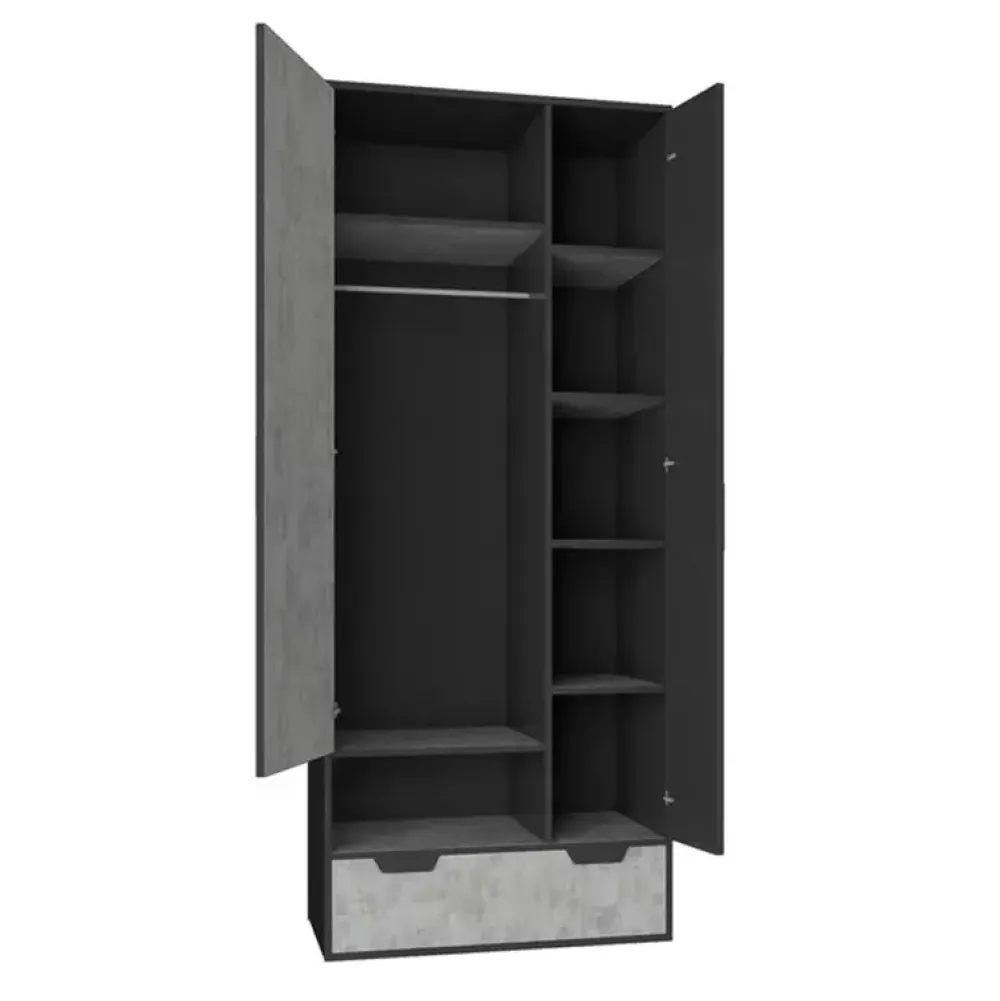 Zestaw mebli do pokoju młodzieżowego z kolekcji NELSE składa się z pojemnej komody z czterema szufladami oraz dwóch drzwi, za każdymi z nich znalazła się półka. Dodatkowo wyposażenie w regał na książki pozwoli ci umieścić swoje akcesoria oraz dekory na jego półkach, nadając w ten sposób pomieszczeniu twoich własnych akcentów. Nie zabrakło również regału zamkniętego z szufladą, który z pewnością przyda ci się na rozmaite akcesoria. Biurko natomiast posiada wysuwaną tackę pod blatem, dzięki której zyskasz prosty dostęp do klawiatury, a szafka oraz szuflada pozwolą ci na szybki dostęp do najpotrzebniejszych akcesoriów biurkowych. Gdyby zabrakło ci miejsca na ubrania, pojemna szafa z szufladą, półkami oraz drążkiem na wieszaki z pewnością pomieści resztę twojej garderoby. Uzupełnieniem zestawu pozostała półka wisząca, wykonana w nietuzinkowym kształcie, która poprzez umieszczone na niej akcesoria, pozwoli ci nadać pomieszczeniu twoich własnych, niepowtarzalnych i wyjątkowych akcentów.
