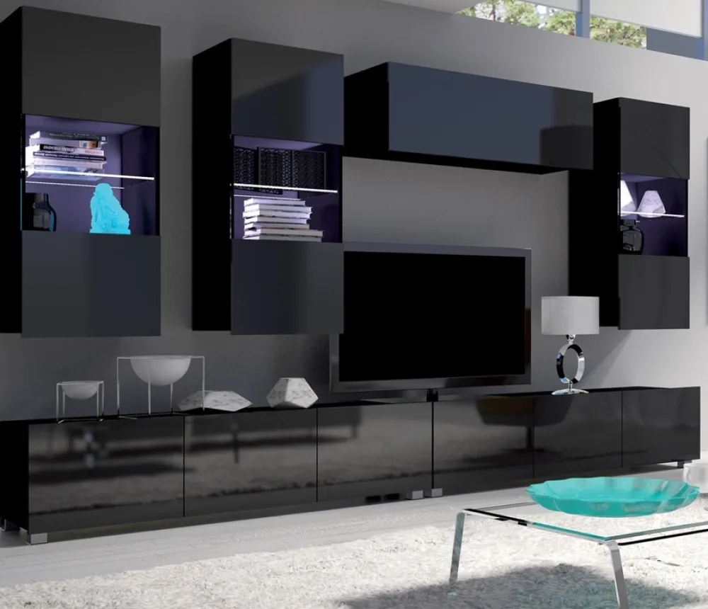 Zestaw mebli do salonu MODERN 5 – nowoczesna funkcjonalność i stylowy czarny połysk