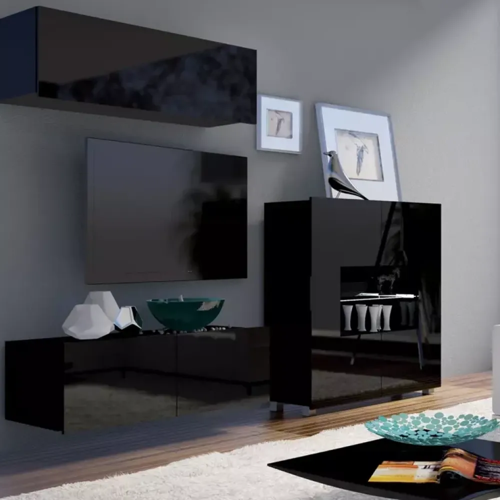 Meblościanka MODERN czarny połysk – funkcjonalne trio w nowoczesnej odsłonie