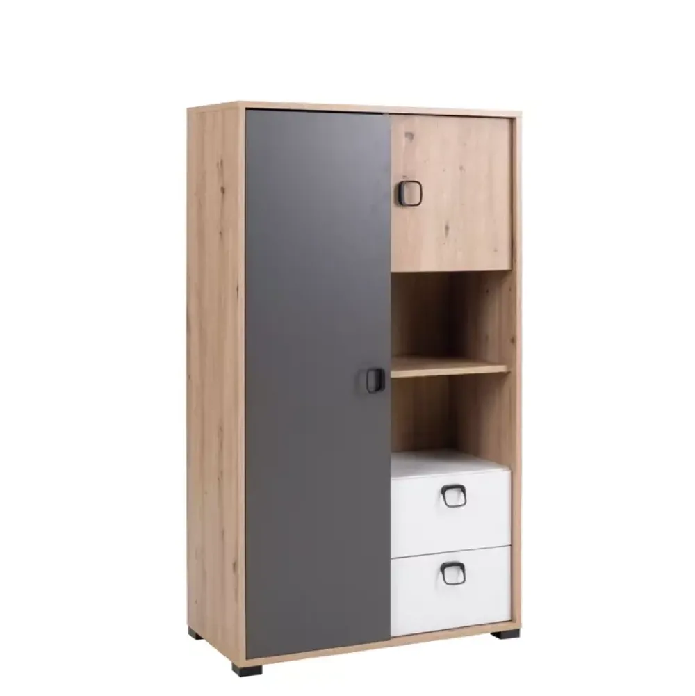 - Korpus i fronty wykonane z wysokiej jakości płyty odpornej na zarysowania i łatwej do utrzymania w czystości, co jest dużym atutem w meblach do pokoju młodzieżowego. Płyta laminowana o grubości 16 mm,