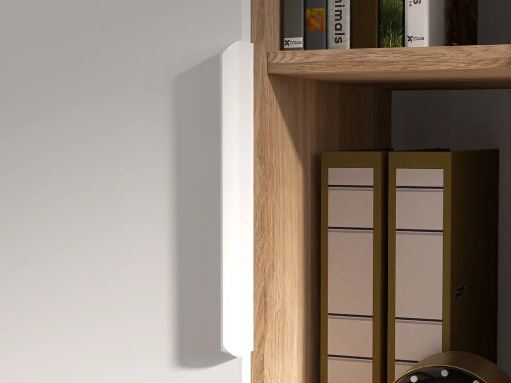 Po prawej stronie regału umieściliśmy cztery otwarte półki, które są doskonałym miejscem na wyeksponowanie ulubionych książek, dekoracji, pamiątek czy innych przedmiotów, które dodadzą wnętrzu osobistego charakteru. Otwarta konstrukcja półek umożliwia łatwy dostęp do rzeczy, które chcesz mieć zawsze na widoku.