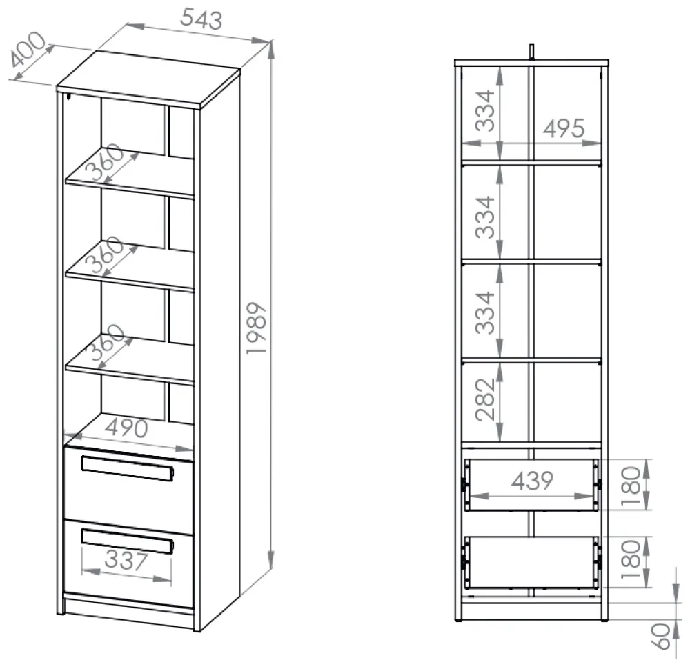 - Regał z szufladami DROP o szerokości 55 cm. Korpus regału został wykonany z płyty laminowanej o grubości 22 mm. Krawędzie regału zostały zabezpieczone okleina ABS. Regał został wyposażony w dwie szuflady na prowadnicy kulkowej.
