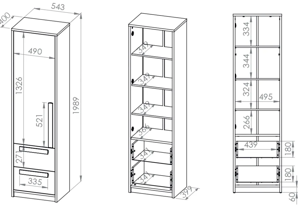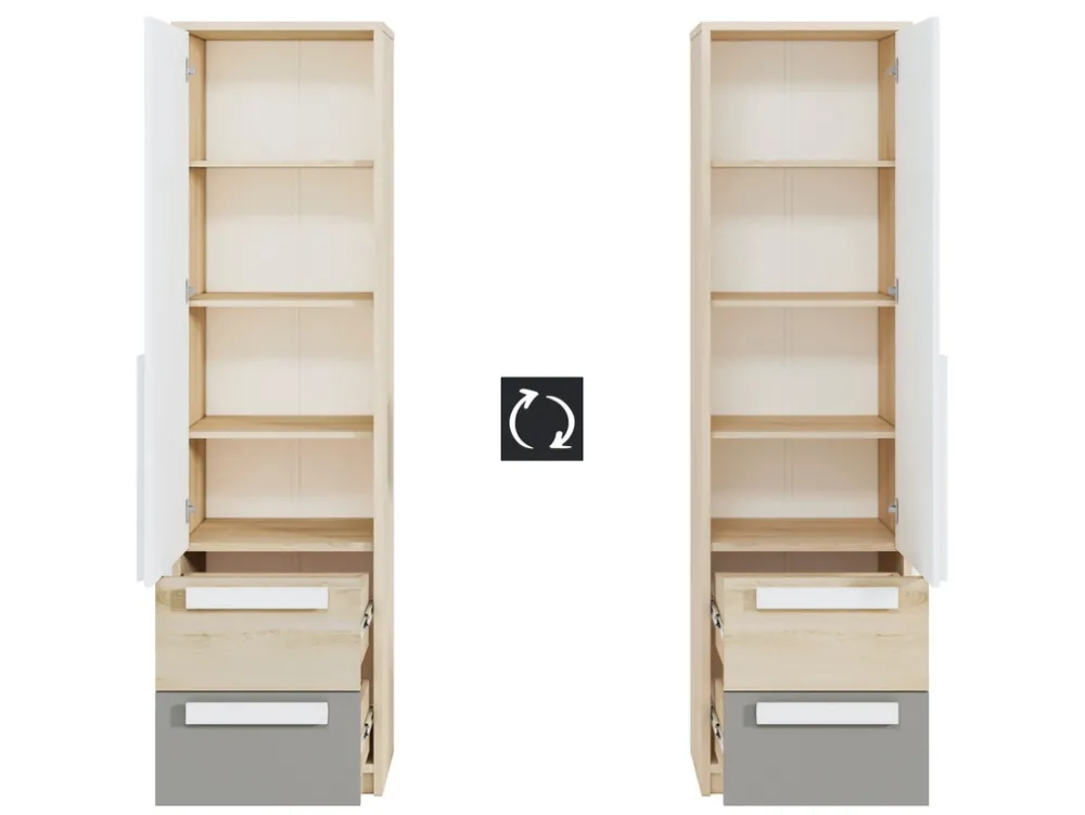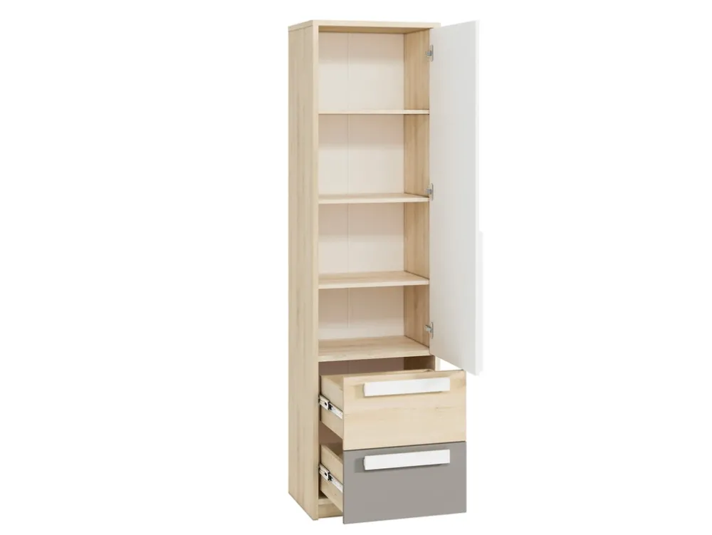 - Regał zamknięty do pokoju młodzieżowego DROP o szerokości 55 cm. Korpus regału został wykonany z płyty laminowanej o grubości 22 mm. Krawędzie zabezpieczono okleiną ABS. Wyposażony został w dwie pojemne szuflady na prowadnicach kulkowych oraz cztery półki