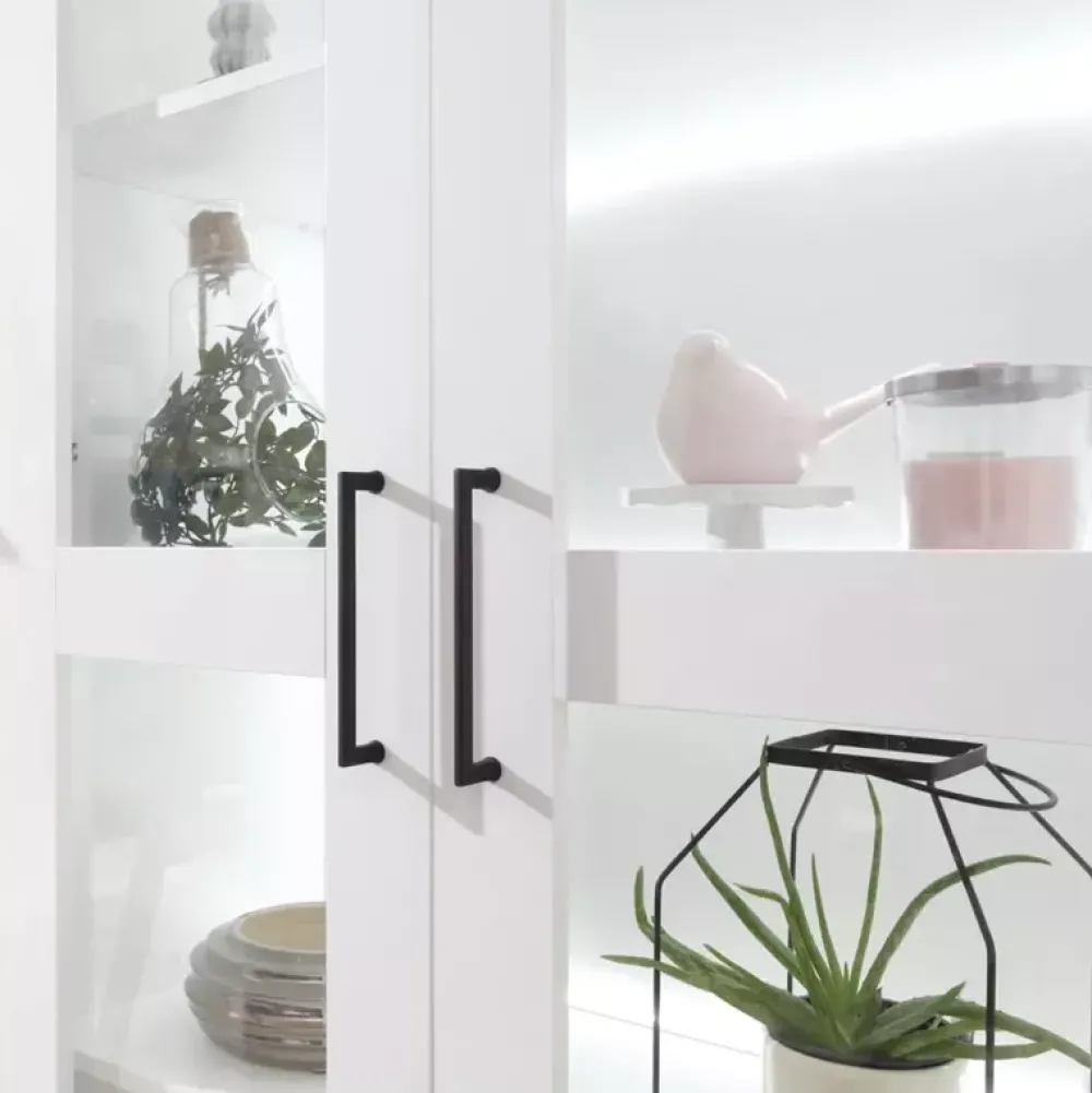 - Kontrastujące z frontami metalowe uchwyty w kolorze czarnym.