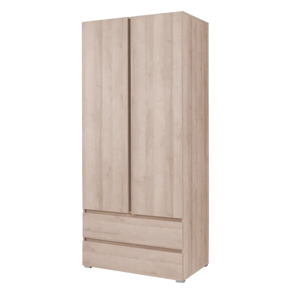 Odkryj praktyczność i elegancję z naszą dwudrzwiową szafą COSTA o szerokości 92 cm, idealną do pokoju młodzieżowego. Wykonana z trwałej płyty laminowanej o grubości 16 mm w kolorze dąb sonoma, ta nowoczesna szafa to połączenie naturalnej estetyki z nowoczesnym designem.