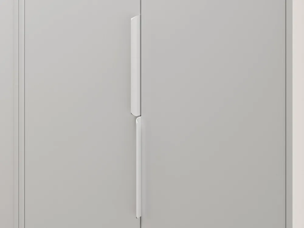 Drzwi szafy wyposażone są w nowoczesny system cichego domykania, co sprawia, że użytkowanie mebla jest wyjątkowo komfortowe. Koniec z hałasem przy zamykaniu drzwi – teraz każda czynność będzie cicha i płynna, co docenią zarówno domownicy, jak i ich goście.
