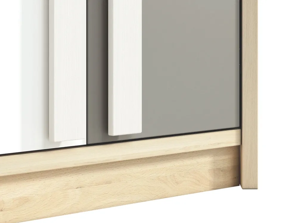 Dodatkowym atutem szafy są uchwyty wykonane z drewna w kolorze białym. Dzięki temu mebel zyskuje wyjątkowy, nowoczesny charakter, który doskonale wpisuje się w młodzieżowy styl pokoju. Białe uchwyty nadają lekkości i harmonii, co sprawia, że szafa stanie się nie tylko praktycznym, ale również stylowym elementem wnętrza.