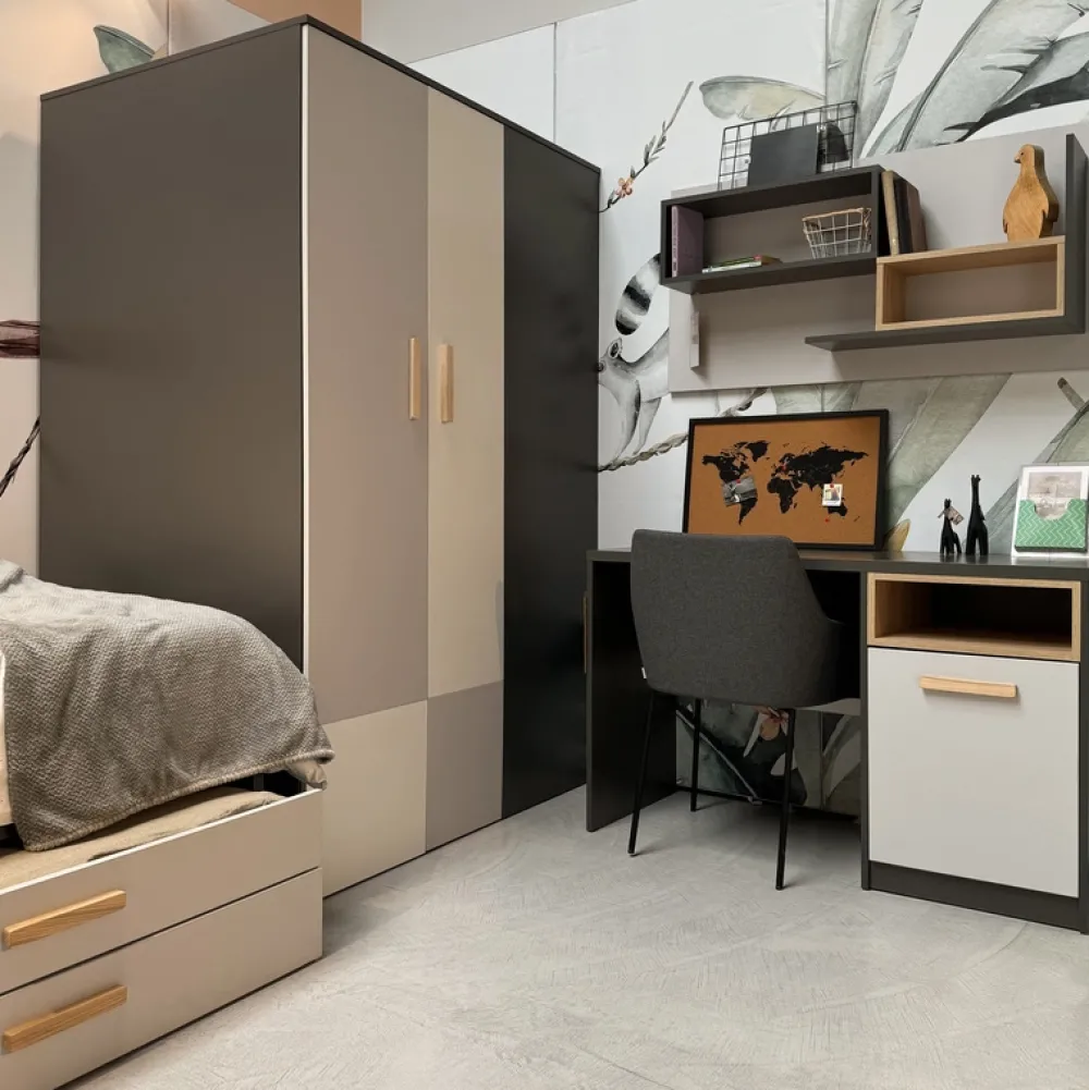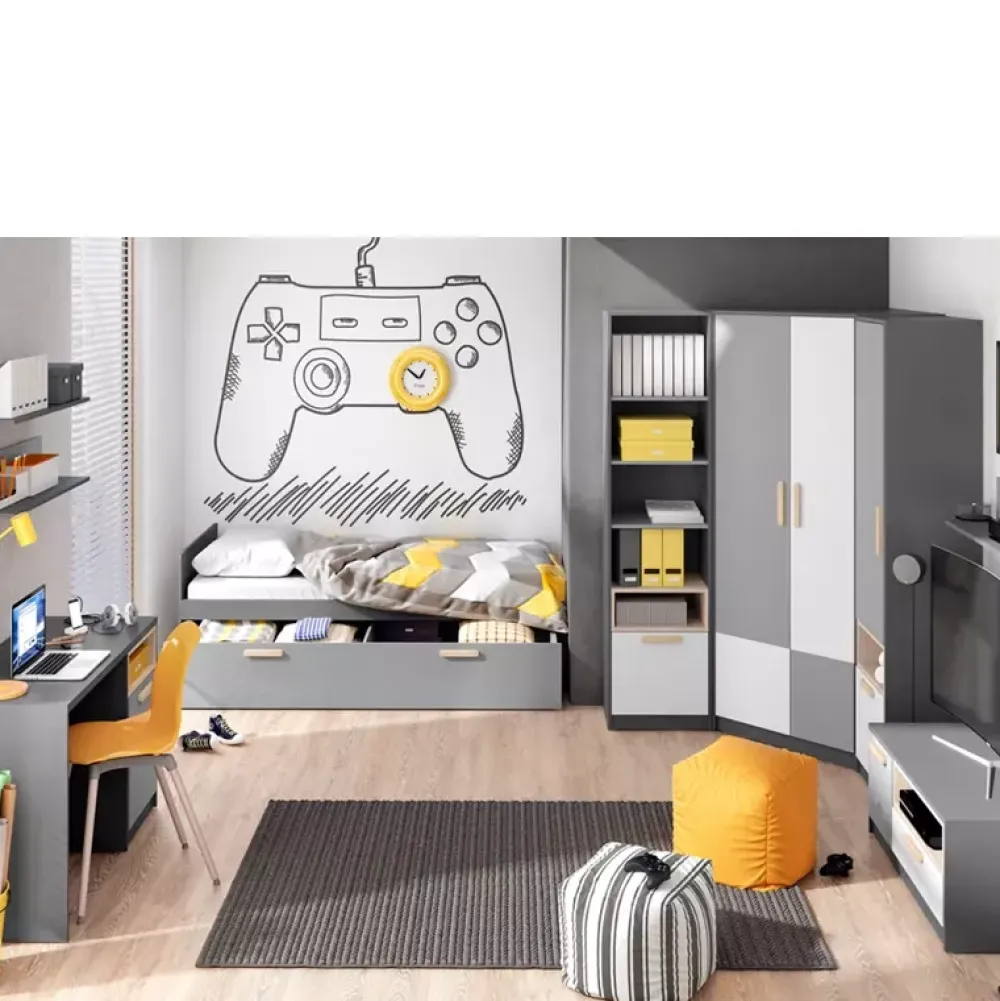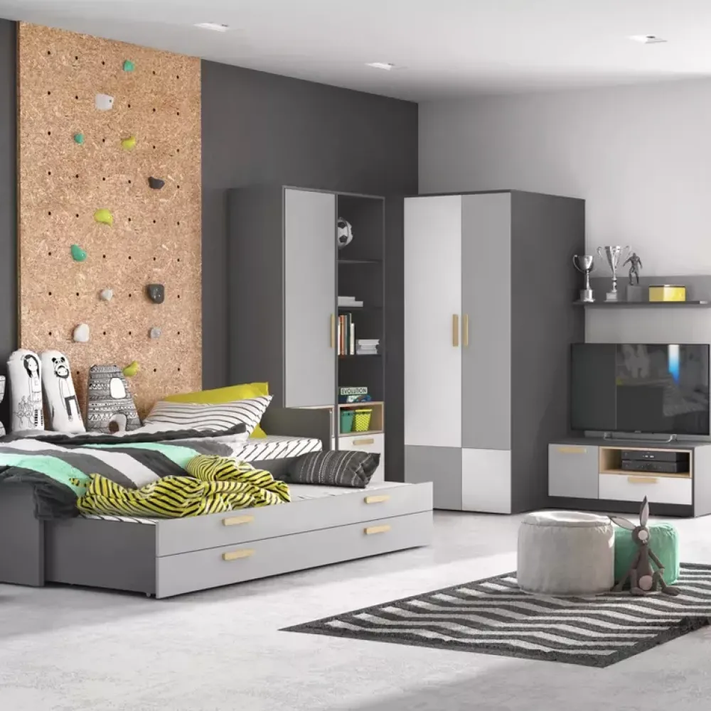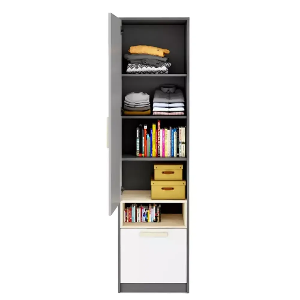 Drobne elementy dekoracyjne i wykończenie w niepowtarzalnej opcji kolorystycznej sprawiają, że ta szafa młodzieżowa będzie stylowym i funkcjonalnym dodatkiem do każdego pokoju młodzieżowego.