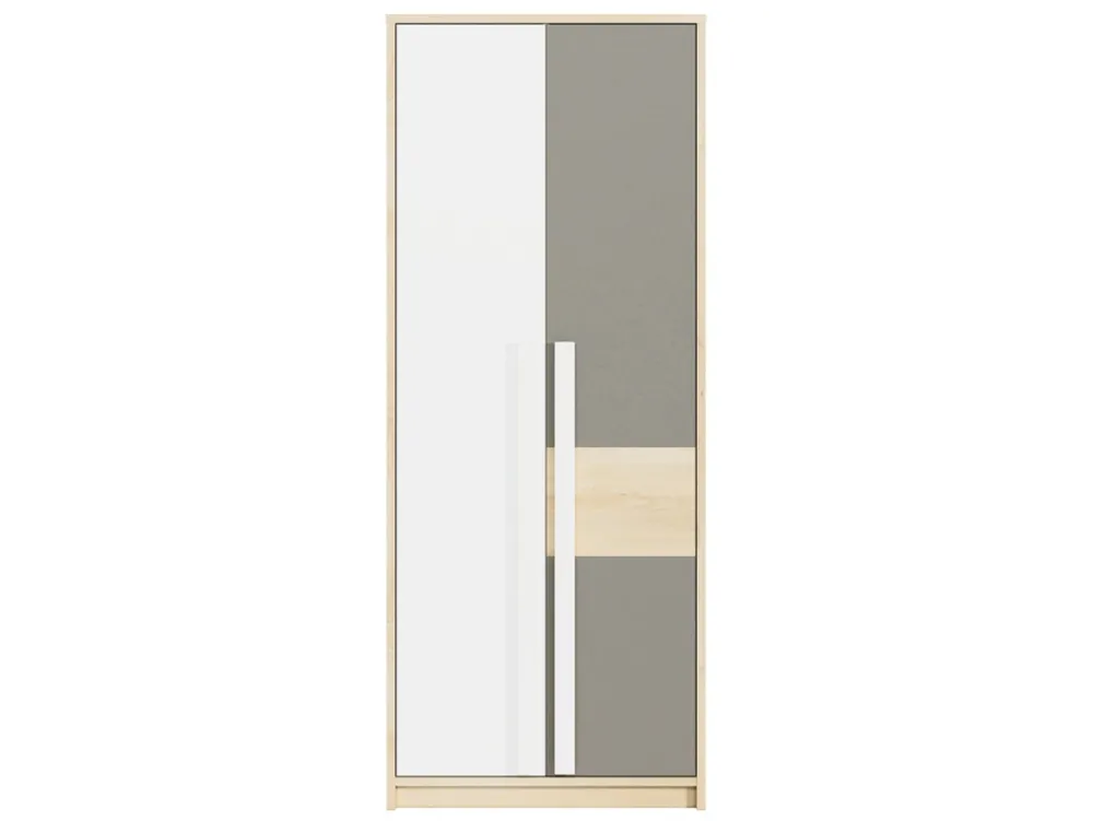 - Szafa do pokoju młodzieżowego DROP o szerokości 80 cm. Korpus został wykonany z płyty laminowanej o grubości 22 mm. Krawędzie zabezpieczono okleina ABS. Wewnątrz znajdziemy cztery przestronne półki oraz dwa drążki na wieszaki. Uchwyt wykonany z drewna.