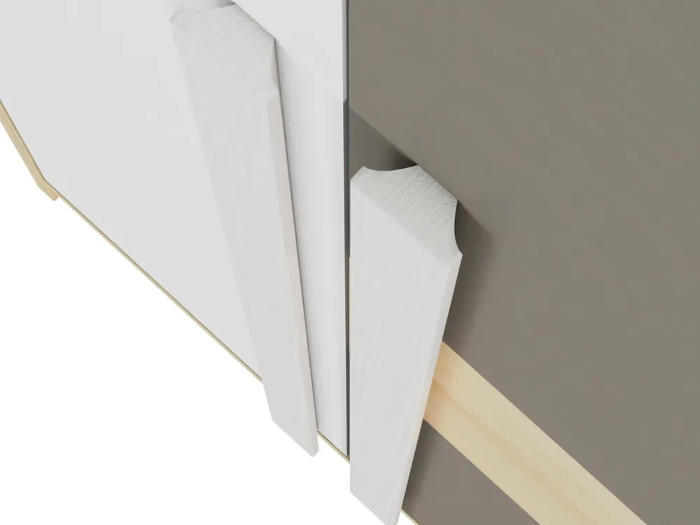Uchwyty wykonane z drewna, pomalowane na biało, dodają szafie elegancji i nowoczesności. Ich minimalistyczny design sprawia, że szafa idealnie komponuje się z różnymi stylami wnętrz, od skandynawskiego po industrialny. Biały kolor uchwytów wprowadza lekkość i świeżość do pomieszczenia, podkreślając jego młodzieńczy charakter.